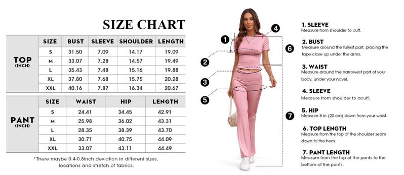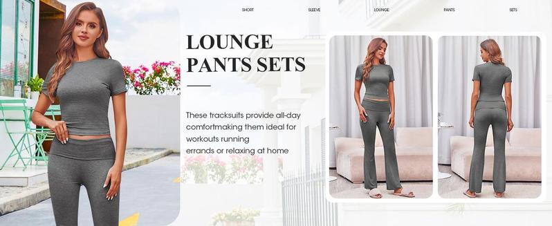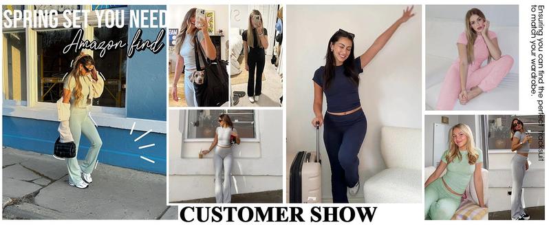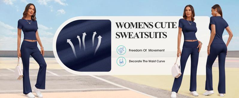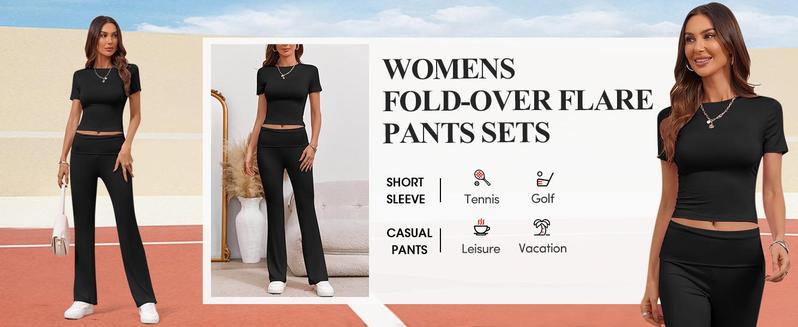 - Style: 2-piece set (short sleeve crop top + foldover flare pants)